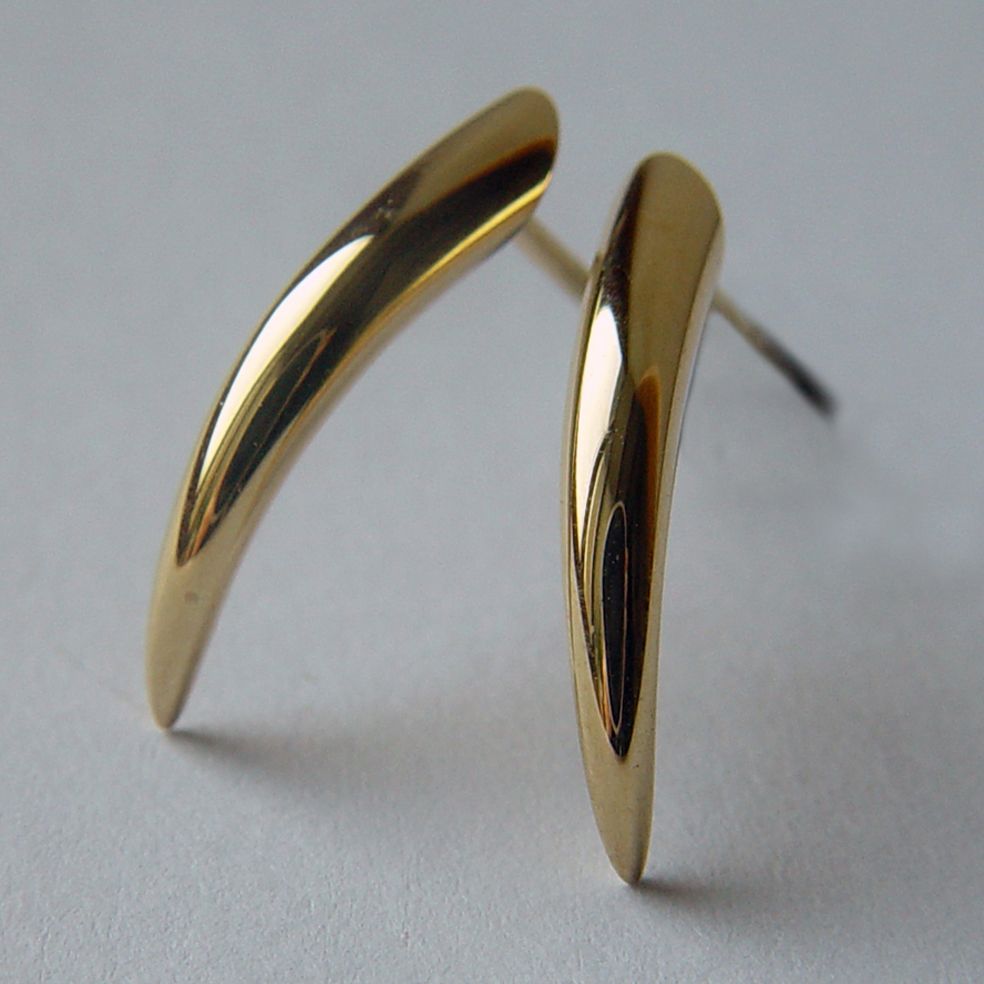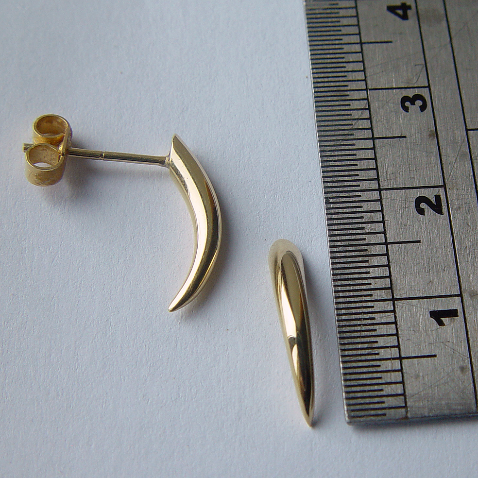 These striking 18ct gold spike earrings are pure and simple in design. They are practical and unusual everyday earrings. The solid gold studs taper from 3mm.