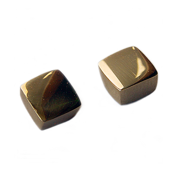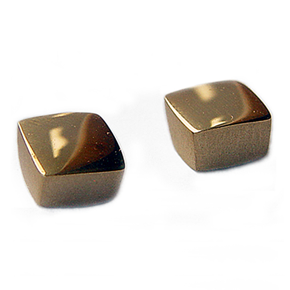 Square 18ct gold studs. These solid chunky 18ct yellow gold earrings are practical, comfortable and therefore ideal for everyday wear. The approximate maximum dimensions are 6x6x3mm.